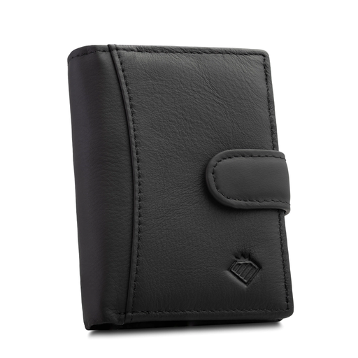 Portfel wykonano z wysokiej jakości skóry naturalnej i starannie wykończono w każdym detalu. Zamknięcie na zatrzask zabezpiecza zawartość, a klasyczny design sprawia, że model sprawdzi się zarówno na co dzień, jak i w bardziej formalnych sytuacjach. Wnętrze oferuje dwie komory na banknoty, kieszeń na bilon zamykaną na zatrzask oraz rozbudowane przegródki na karty – również na rozkładanym panelu. System RFID chroni dane kart przed nieautoryzowanym odczytem, a przezroczyste kieszenie umożliwiają wygodne przechowywanie dokumentów.