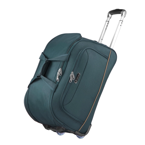 Mała torba podróżna zielona na kółkach z kolekcji RUBY to kompaktowe i wyjątkowo funkcjonalne rozwiązanie dla osób ceniących mobilność i niezawodność. Wykonana z materiału Codura 1200D, torba charakteryzuje się podwyższoną odpornością na przetarcia i uszkodzenia mechaniczne, co czyni ją idealnym wyborem na krótsze wyjazdy i codzienne użytkowanie. Zastosowane nieprzemakalne tworzywo skutecznie zabezpiecza zawartość przed wilgocią i deszczem, gwarantując ochronę bagażu w każdych warunkach. Wyposażona w dwa trwałe kauczukowe kółka na metalowych łożyskach, torba zapewnia ciche i stabilne prowadzenie na różnych nawierzchniach. Usztywnione dno oraz zabezpieczenia narożników zwiększają odporność na uderzenia, jednocześnie poprawiając stabilność konstrukcji.