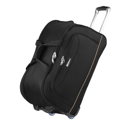 Funkcjonalność podnosi dwupoziomowy teleskopowy uchwyt oraz solidne rączki łączone rzepem, które ułatwiają przenoszenie. Wnętrze torby zostało zaprojektowane z myślą o wygodnej organizacji – zawiera dwie kieszonki wewnętrzne oraz elastyczne pasy spinające bagaż, które utrzymują zawartość na miejscu podczas podróży. Całość uzupełnia zewnętrzna kieszeń na podręczne przedmioty i solidne zamki błyskawiczne z możliwością założenia dołączonej kłódki. Możliwość składania torby ułatwia jej przechowywanie nawet w ograniczonej przestrzeni.