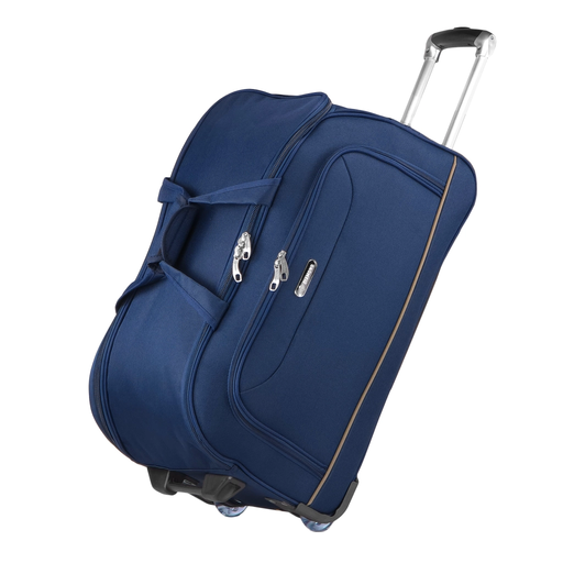 Funkcjonalność podnosi dwupoziomowy teleskopowy uchwyt oraz solidne rączki łączone rzepem, które ułatwiają przenoszenie. Wnętrze torby zostało zaprojektowane z myślą o wygodnej organizacji – zawiera dwie kieszonki wewnętrzne oraz elastyczne pasy spinające bagaż, które utrzymują zawartość na miejscu podczas podróży. Całość uzupełnia zewnętrzna kieszeń na podręczne przedmioty i solidne zamki błyskawiczne z możliwością założenia dołączonej kłódki. Możliwość składania torby ułatwia jej przechowywanie nawet w ograniczonej przestrzeni.