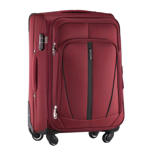 Walizka podróżna czerwona miękka DIAMOND z kolekcji RUBY. Dzięki trwałemu materiałowi Codura 1200D, podróż staje się bezpieczna i komfortowa. Cztery kauczukowe kółka na metalowych łożyskach gwarantują płynne poruszanie się, nawet po nierównym terenie. Dodatkowe zabezpieczenia narożników oraz zamek szyfrowy chronią walizkę przed uszkodzeniami oraz kradzieżą, natomiast nieprzemakalne tworzywo zabezpiecza zawartość przed niesprzyjającymi warunkami atmosferycznymi.