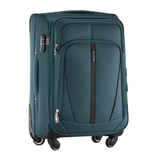 Walizka podróżna zielona miękka DIAMOND z kolekcji RUBY. Dzięki trwałemu materiałowi Codura 1200D, podróż staje się bezpieczna i komfortowa. Cztery kauczukowe kółka na metalowych łożyskach gwarantują płynne poruszanie się, nawet po nierównym terenie. Dodatkowe zabezpieczenia narożników oraz zamek szyfrowy chronią walizkę przed uszkodzeniami oraz kradzieżą, natomiast nieprzemakalne tworzywo zabezpiecza zawartość przed niesprzyjającymi warunkami atmosferycznymi.